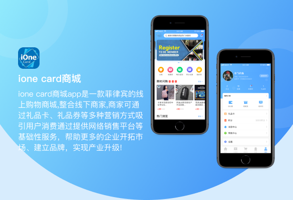 ione card商城app是一款菲律宾的线 上购物商城,整合线下商家,商家可通 过礼品卡、礼品券等多种营销方式吸 引用户消费通过提供网络销售平台等 基础性服务,帮助更多的企业开拓市 场、建立品牌,实现产业升级!